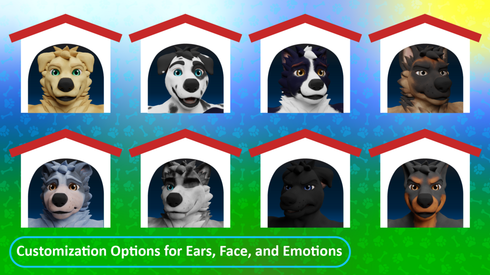 Introducing Design-A-Dog! A male anthropomorphic domestic dog avatar base for VRChat. Featuring 8 breed prefabs to get you started, Design-A-Dog also has a variety of customization options to create many different dog breeds.